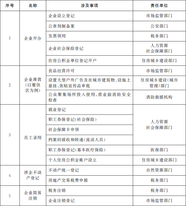 (一)推進(jìn)企業(yè)全生命周期相關(guān)政務(wù)服務(wù)事項(xiàng)“一件事一次辦”。圍繞企業(yè)從開辦到注銷全生命周期的重要階段,梳理集成同一階段內(nèi)需要到政府部門、公用企事業(yè)單位和服務(wù)機(jī)構(gòu)辦理的多個(gè)單一政務(wù)服務(wù)事項(xiàng),為企業(yè)提供開辦、工程建設(shè)、生產(chǎn)經(jīng)營、惠企政策兌現(xiàn)、員工錄用、不動(dòng)產(chǎn)登記、注銷等集成化辦理服務(wù),提高辦事效率,降低辦事成本。