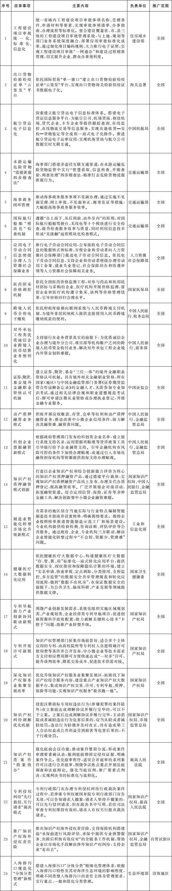 (一)在全國(guó)范圍內(nèi)復(fù)制推廣的改革事項(xiàng)。