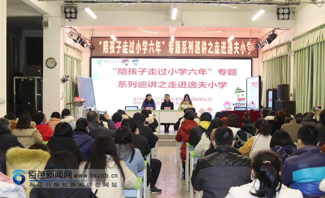 ????????百色新聞網(wǎng)右江區(qū)1月12日訊(通訊員 韋艷紅 黃晟嘉)教育的發(fā)展離不開學(xué)校、家庭、社會(huì)的共同努力。為了構(gòu)建良好的教育環(huán)境,1月7日,廣西益眾文化傳媒有限公司、百色市逸夫小學(xué)聯(lián)合舉辦“陪孩子走過(guò)小學(xué)六年”家庭教育進(jìn)校園巡講活動(dòng)。