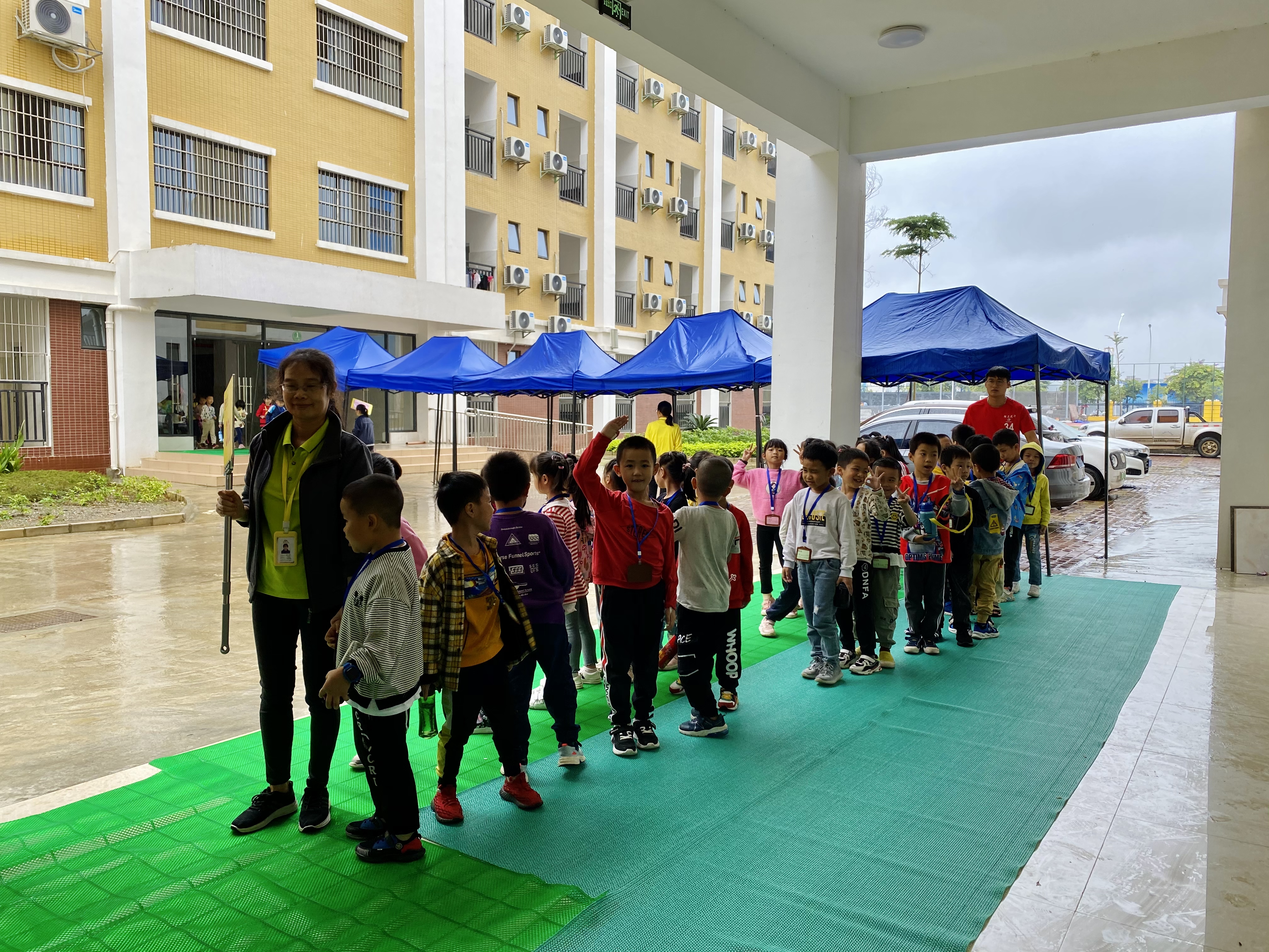 ????????近日來(lái),秋雨延綿。為了讓在校托管學(xué)生安全通行,益眾托管各校區(qū)精心組織力量,為孩子搭起了一排排遮雨棚和鋪設(shè)一張張防滑墊,切實(shí)做好雨天安全防范,保障學(xué)生的人身安全與托管工作的順利進(jìn)行。
