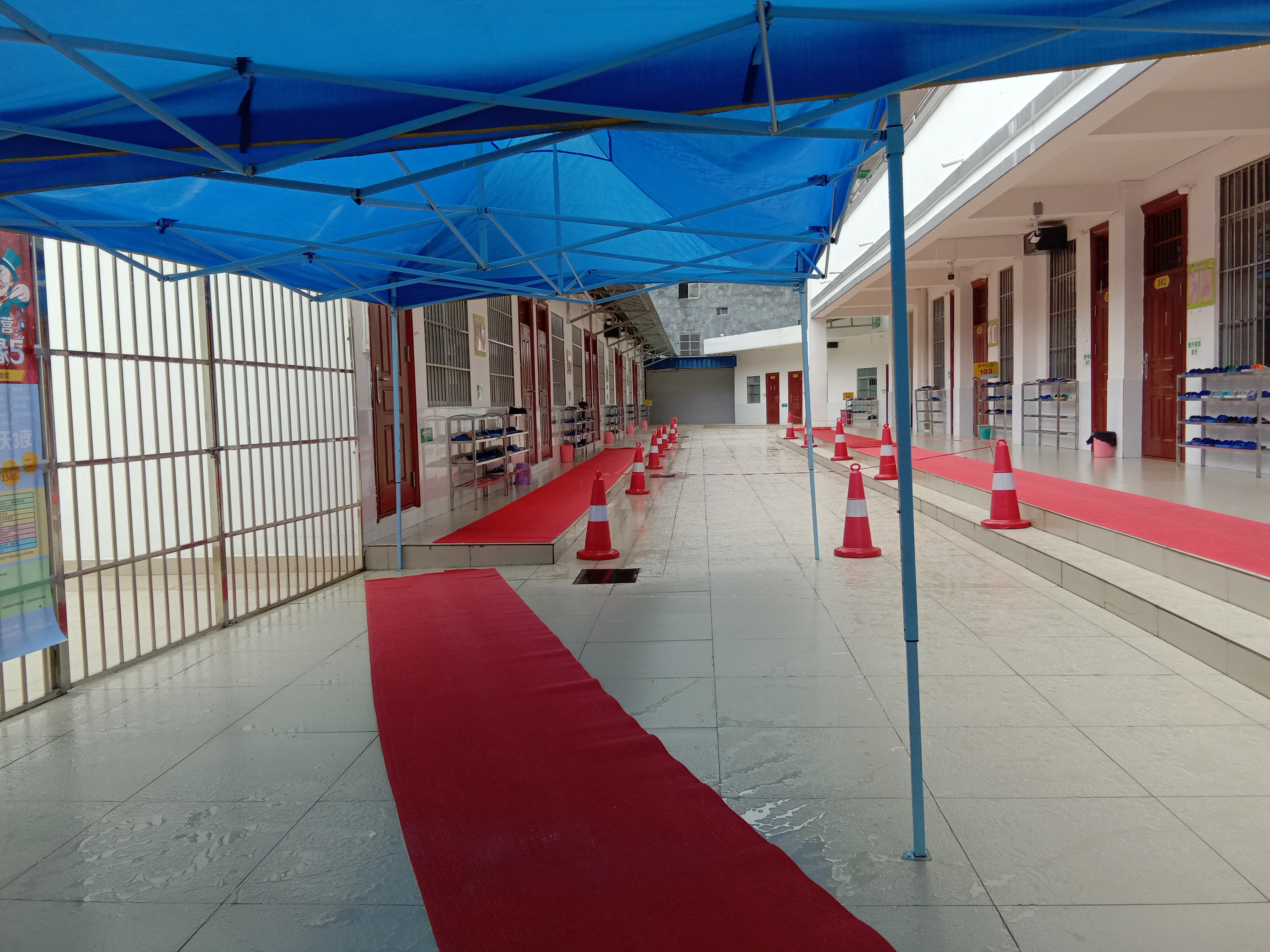 布置好的遮雨棚和防滑墊