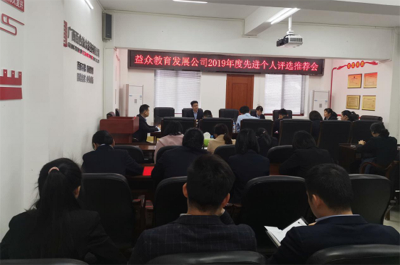 為進(jìn)一步提高干部職工的凝聚力和戰(zhàn)斗力,樹立典型,發(fā)揮先鋒模范作用,根據(jù)公司總部的《2019年度先進(jìn)集體、先進(jìn)個(gè)人評(píng)選表彰工作方案》文件要求,益眾教育公司組織開展2019年度評(píng)先評(píng)優(yōu)工作,公司本部、下屬公司全體管理人員參會(huì)。評(píng)先評(píng)優(yōu)工作本著公開、公平、公正的原則,以實(shí)事求是的態(tài)度,通過(guò)不記名投票方式進(jìn)行評(píng)選,選拔出一批政治素質(zhì)高、崗位技能強(qiáng)、工作完成滿意度佳、群眾評(píng)價(jià)好的先進(jìn)員工。
