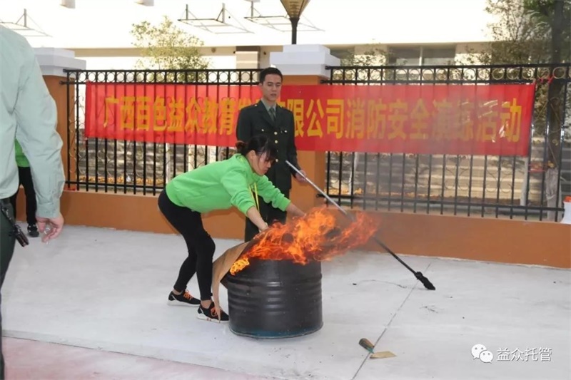 ? ? ? ?為進(jìn)一步提高員工消防安全防范意識(shí),增強(qiáng)員工對(duì)突發(fā)火災(zāi)的應(yīng)急處置能力,根據(jù)《廣西百色益眾教育發(fā)展有限公司2018年消防宣傳月活動(dòng)方案》安排,2018年11月8日,廣西百色益眾教育發(fā)展有限公司聯(lián)合百色市市安防火中心在我司承接托管業(yè)務(wù)的百色市第一小學(xué)校區(qū)開展了"防災(zāi)減災(zāi)進(jìn)校園 ?自防自救保安全"消防安全培訓(xùn)活動(dòng)。本次活動(dòng)結(jié)合近年來發(fā)生的典型火災(zāi)案例,將消防知識(shí)和學(xué)校、學(xué)生安全緊密聯(lián)系起來,深入剖析了火災(zāi)案例的教訓(xùn)并詳細(xì)的講解了火災(zāi)類型、火災(zāi)成因、火災(zāi)最佳處置時(shí)機(jī)、應(yīng)急疏散跟自救逃生方法、各類滅火器材的使用等消防知識(shí)。為加深廣大員工對(duì)理論知識(shí)的理解,讓防災(zāi)減災(zāi)意識(shí)"入腦入心",本次活動(dòng)還相應(yīng)開展了現(xiàn)場初期火災(zāi)處置演練。通過本次活動(dòng),廣大員工的消防安全意識(shí)得到了進(jìn)一步提高,應(yīng)急疏散和避險(xiǎn)能力有了質(zhì)的飛躍,為我司更好的為學(xué)校、學(xué)生提供貼心服務(wù)打下了良好的基礎(chǔ)。