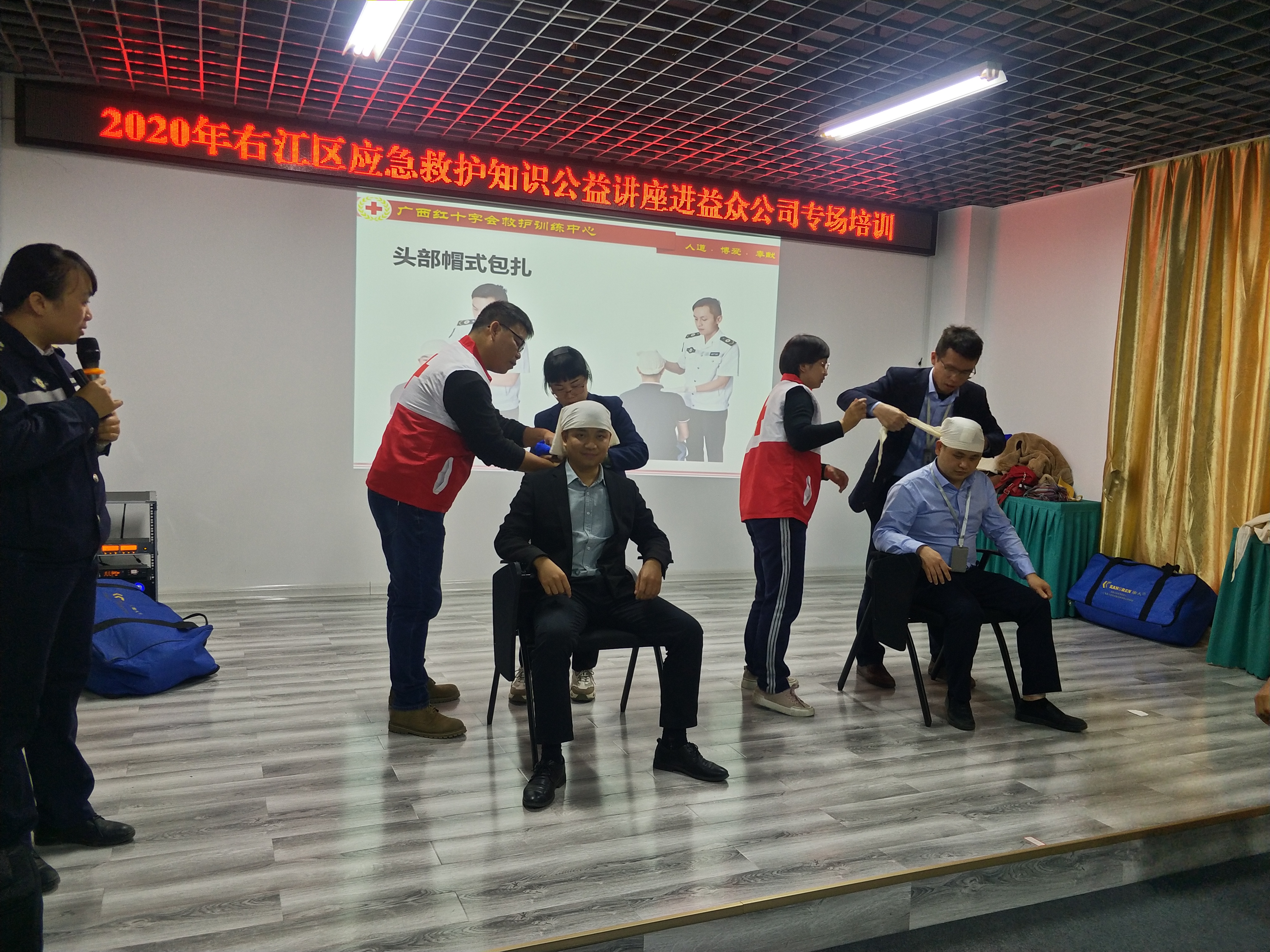 ????????培訓由廣西紅十字會救護訓練中心教務(wù)科長辛健敏老師主講。在培訓中,辛老師介紹了應(yīng)急救護基本知識及心肺復蘇等技能實踐操作,參訓員工們在培訓人員的指導下認真動手演練,通過理論和實操相結(jié)合方式,掌握基本應(yīng)急救護知識技能,并就日常生活中遇到的應(yīng)急救護步驟進行解答。