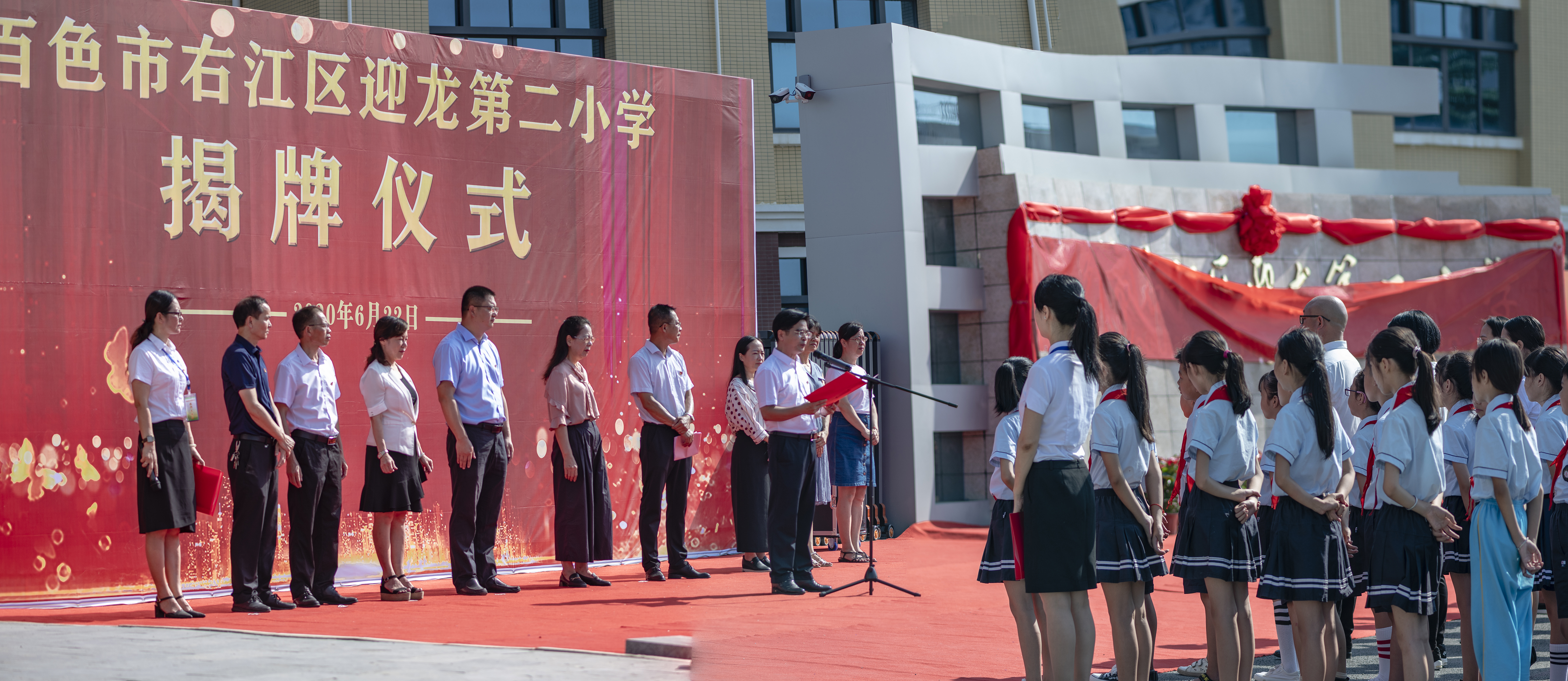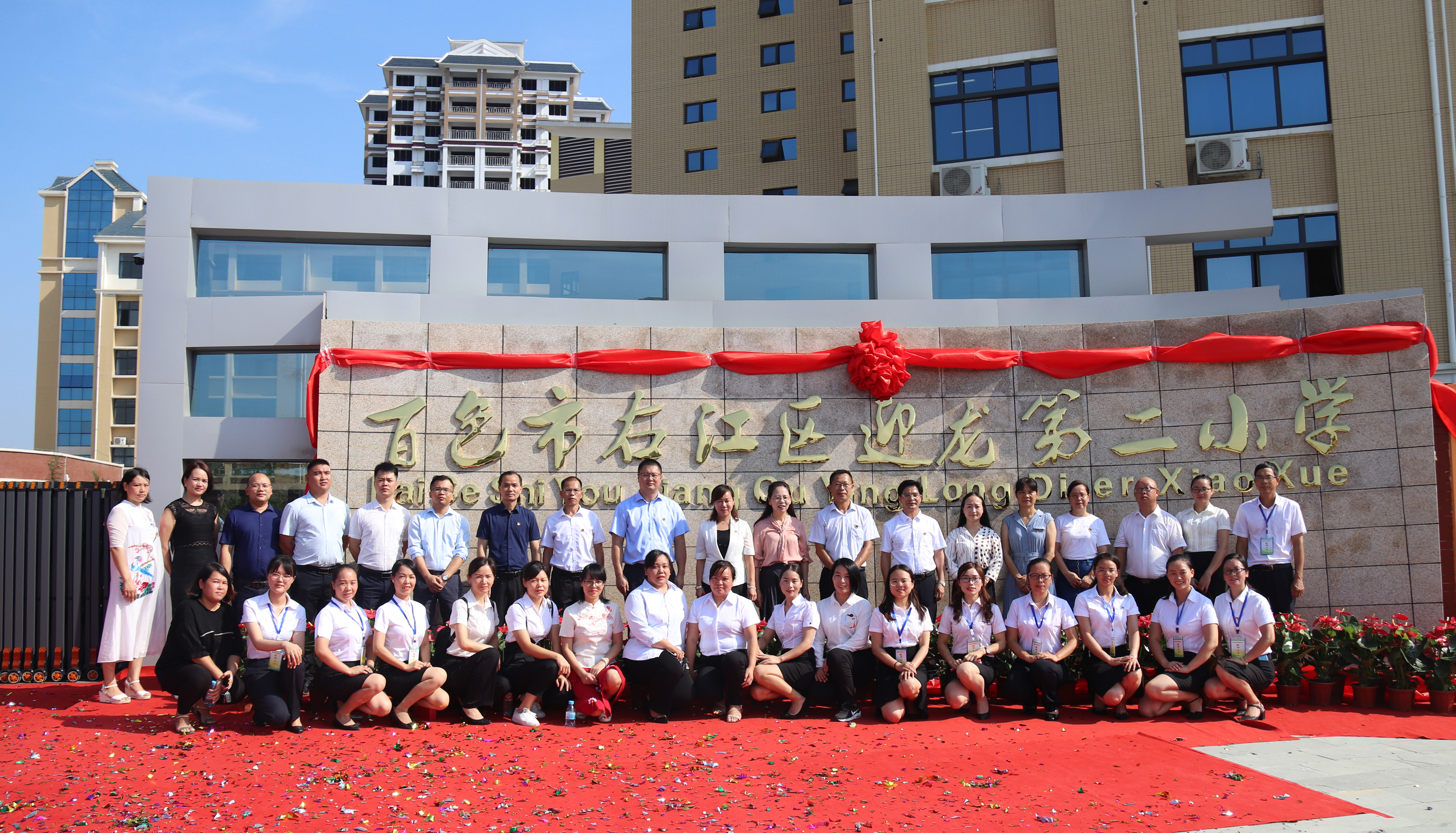 ????6月22日上午,百色市右江區(qū)迎龍第二小學揭牌儀式在該校大門舉行,標志著這所由廣西百色益眾投資有限公司承建的小學全面交付使用。