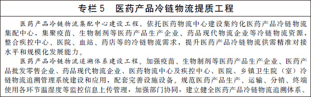完善醫(yī)藥產(chǎn)品冷鏈物流設施網(wǎng)絡。鼓勵醫(yī)藥流通企業(yè)、藥品現(xiàn)代物流企業(yè)建設醫(yī)藥物流中心,完善醫(yī)藥冷庫網(wǎng)絡化布局及配套冷鏈設施設備功能,提升醫(yī)藥產(chǎn)品冷鏈全程無縫銜接的信息化管理水平。推動醫(yī)藥流通企業(yè)按《藥品經(jīng)營質(zhì)量管理規(guī)范》要求配備冷藏冷凍設施設備,支持疾控中心、醫(yī)院、鄉(xiāng)鎮(zhèn)衛(wèi)生院(室)等醫(yī)療網(wǎng)點提高醫(yī)藥產(chǎn)品冷鏈物流和使用環(huán)節(jié)的質(zhì)量保障水平。加強醫(yī)藥物流中心與冷鏈末端的無縫銜接,鼓勵發(fā)展多溫共配、接力配送等模式,探索發(fā)展超低溫配送,構建廣覆蓋、高效率、低成本、安全可靠的醫(yī)藥產(chǎn)品冷鏈物流網(wǎng)絡。