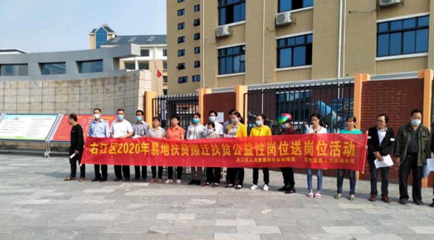 ?近日益眾投資公司下屬百色益嘉人力資源有限公司聯(lián)合右江區(qū)人力資源和社會保障局右江區(qū)迎龍第二小學(xué)右江區(qū)迎龍中學(xué)開展易地扶貧搬遷扶貧公益性崗位送崗位活動。