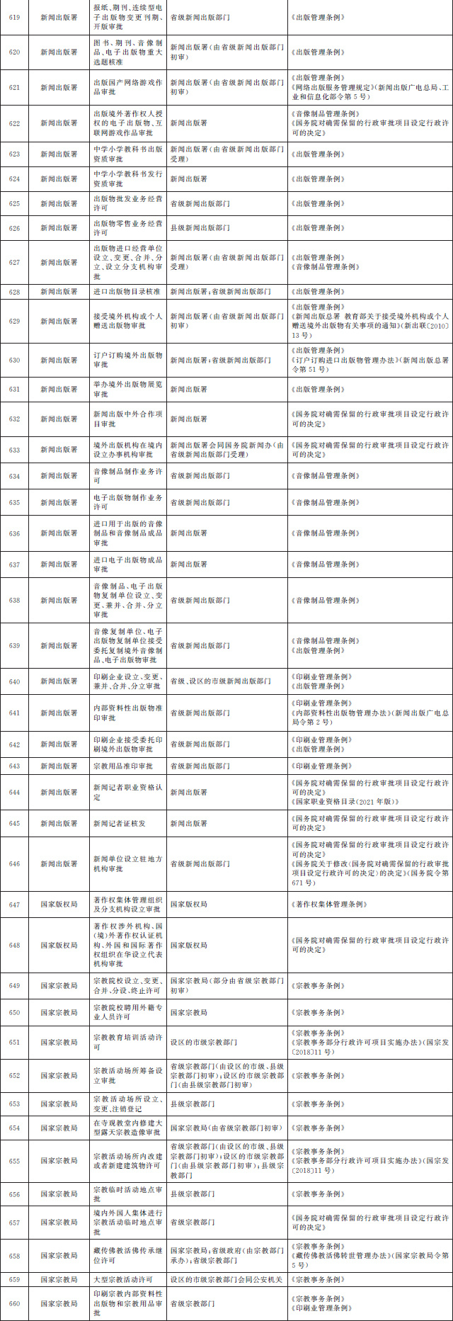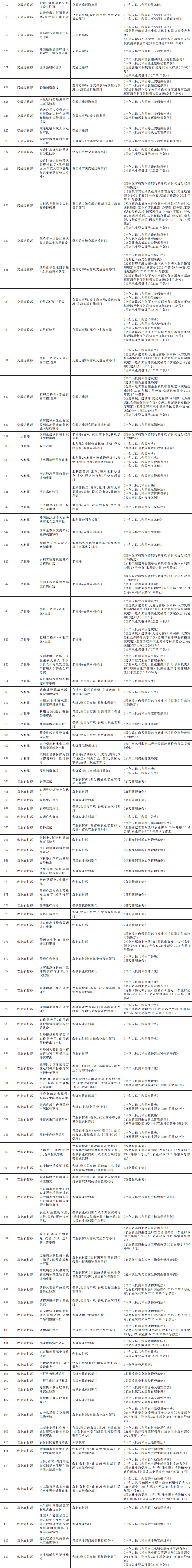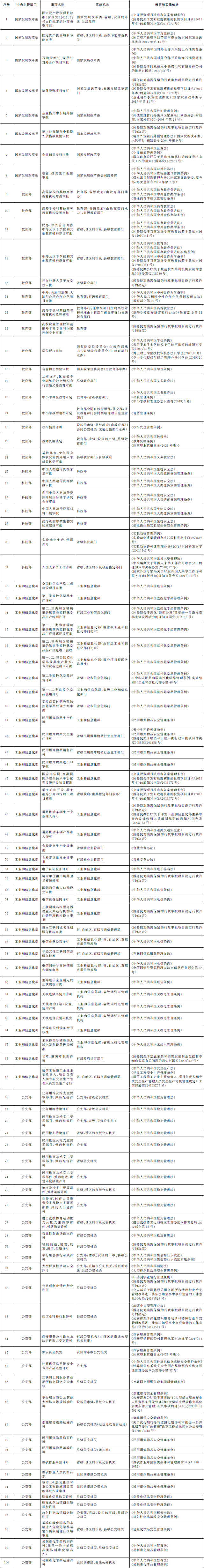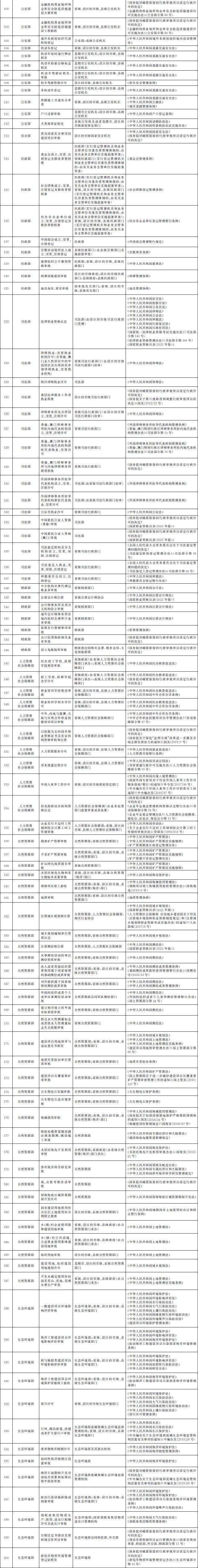 法律、行政法規(guī)、國務(wù)院決定設(shè)定的行政許可事項(xiàng)清單