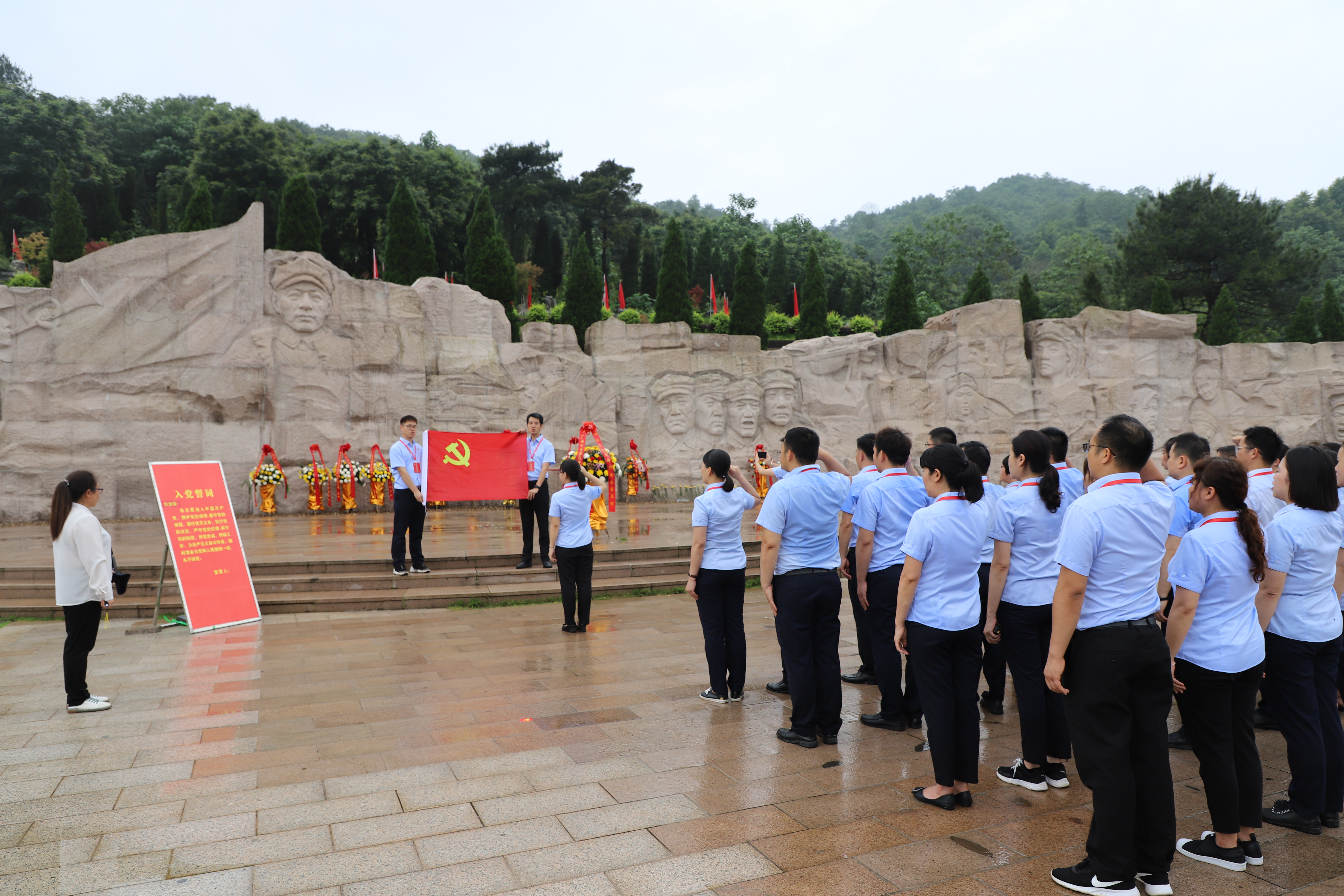 ????????伴著細雨,懷著哀思,6月3日下午,全體學(xué)員在湘江戰(zhàn)役紀念碑園憑吊廣場進行了莊嚴的祭奠革命先烈儀式,向壯烈犧牲的紅軍將士集體默哀、敬獻花籃,深切悼念為革命事業(yè)犧牲的人民英雄。隨后全體黨員重溫入黨誓詞,回望初心使命,堅定政治信仰。